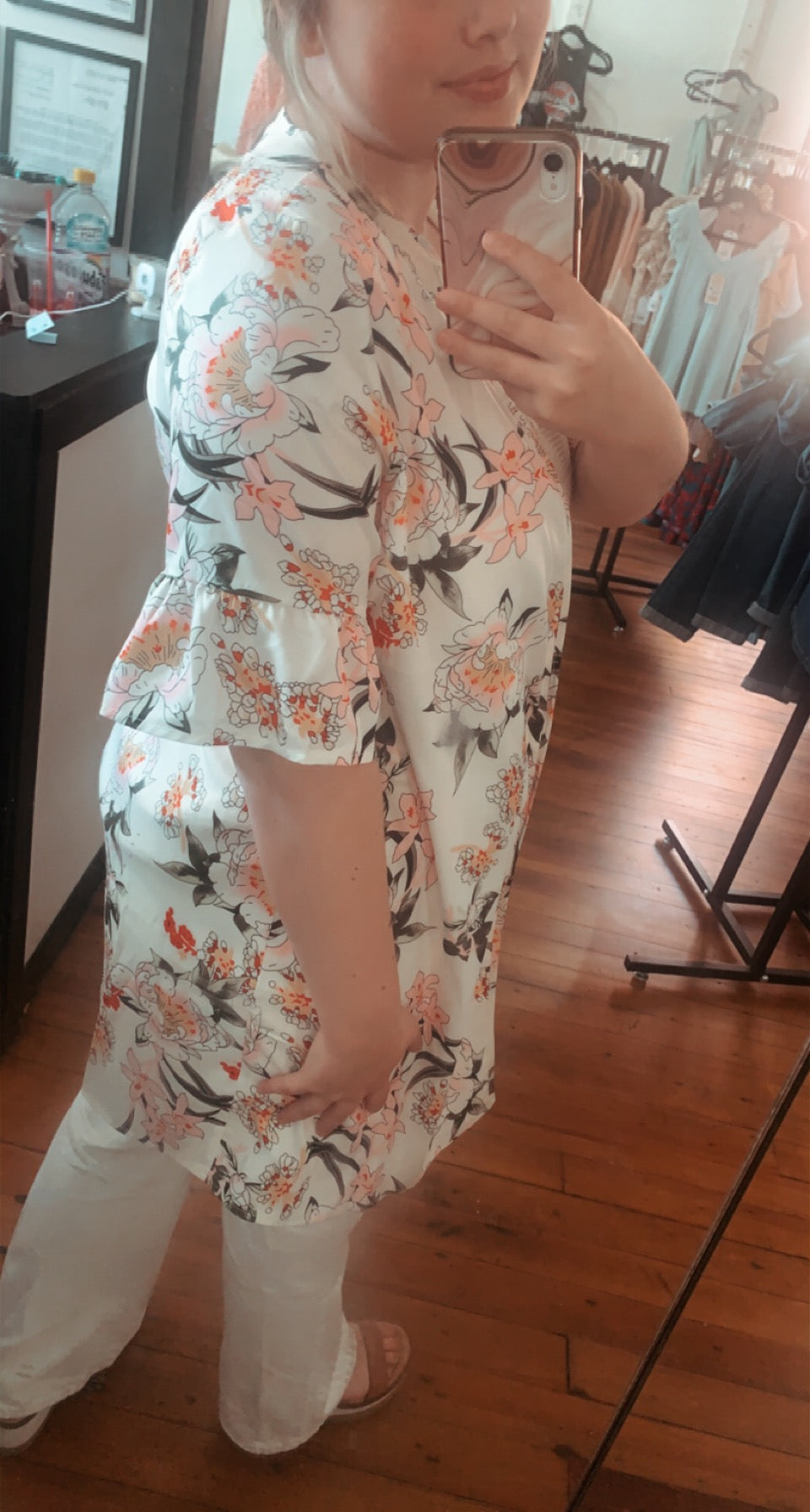 Flower Print Kimono w/ flare sleeves